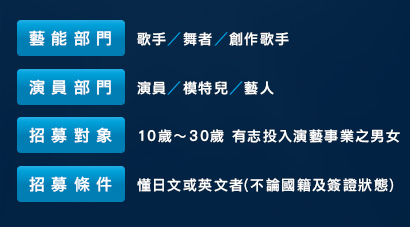 招募對象10歲~30歲 有志投入演藝事業之男女