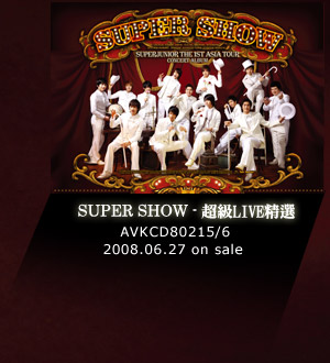 如今這組受到亞洲藝能界關注的超強男孩團體「SUPER JUNIOR」,終於在經過出道兩年近三個月的時間後,於2008年的2月22日至24日在首爾奧林匹克公園的劍術競技場舉行了生平第一次的亞洲巡迴演唱會「SUPER JUNIOR THE 1ST ASIA TOUR – SUPER SHOW」。全場充滿歡愉氛圍且驚喜不斷的一連串表演,相信讓看過的人會一再回味。不過沒能到場觀看的歌迷也不要起餒,此張「SUPER SHOW – 超級LIVE精選」,也將會搶先帶領你進入SUPER JUNIOR為你特別準備的魔幻世界!