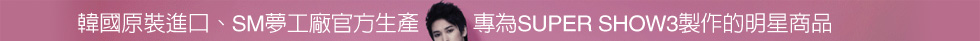 ● 本次SUPER JUNIOR – SUPER SHOW3台灣場明星商品,負責銷售單位avex taiwan「愛貝克思股份有限公司」保留修改販賣活動規則與最後成交與否的權利,也謝謝大家的配合。